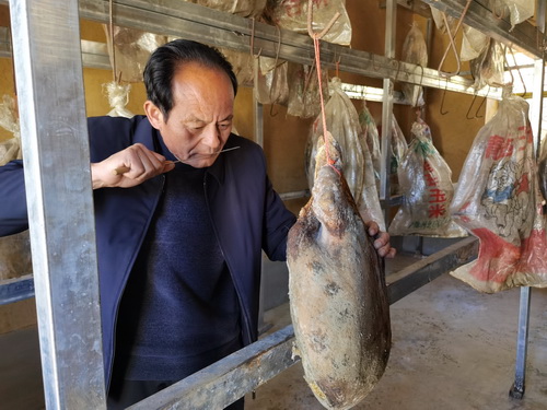 腌制火腿是黎馬村村民傳承已久的儲肉技藝,加上當地獨特的氣候環(huán)境,黎馬火腿形美色艷香糯的獨特品質一直在當地小有名氣。但單家單戶腌制火腿不光規(guī)模小,質量也參差不齊。黎馬火腿雖然作為當地的特色農產品,但一直未能創(chuàng)造出良好的經濟價值。如何挖掘黎馬村火腿特色,將鄉(xiāng)村特色轉化為鄉(xiāng)村經濟是李華所在的工作隊長期思考的問題。