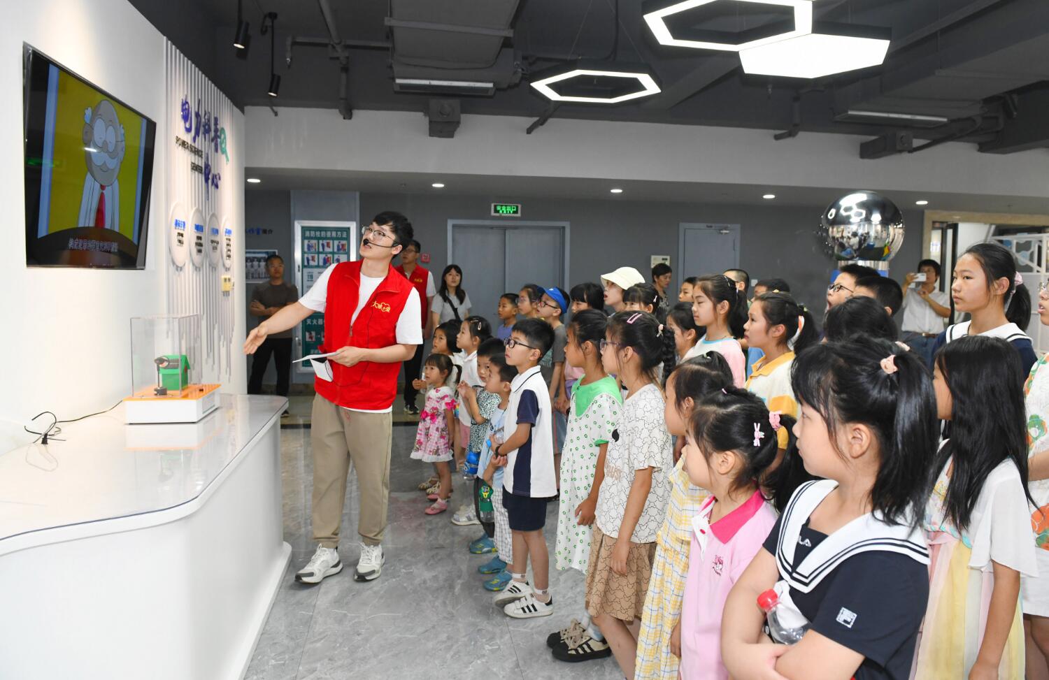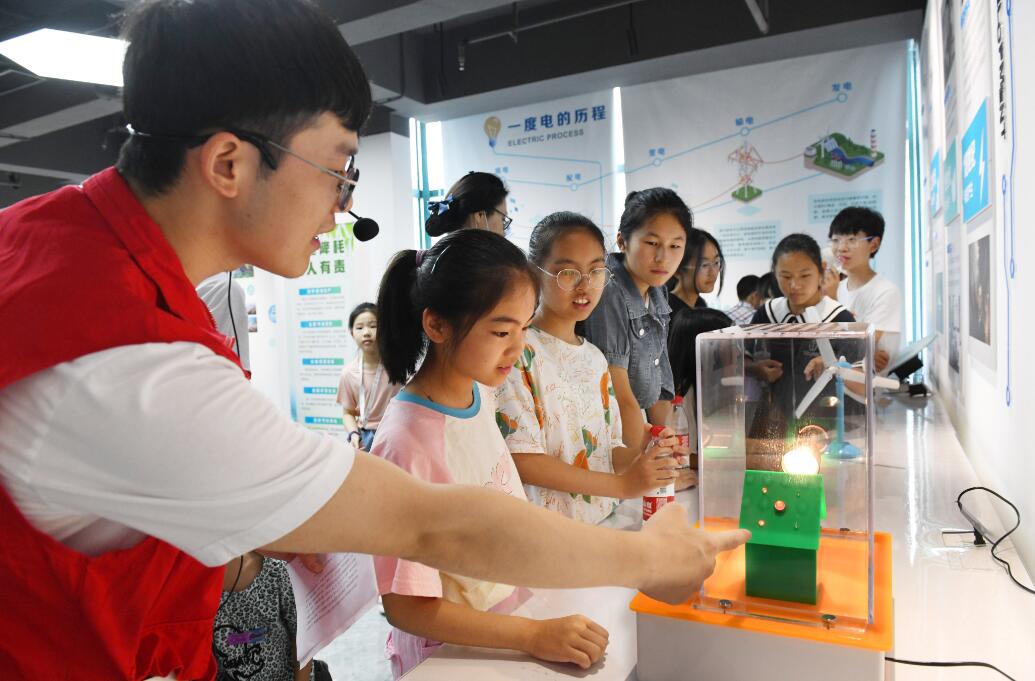 中國(guó)電力網(wǎng)訊 (通訊員 苗云夢(mèng))“小朋友們知道一度電是怎么來(lái)的嗎?”7月14日上午,在國(guó)網(wǎng)余姚市供電公司新時(shí)代文明實(shí)踐基地內(nèi),該公司大城小愛(ài)志愿者張楊歡正給近30名學(xué)生講解一度電的故事,帶領(lǐng)他們?cè)趯W(xué)習(xí)探索中感受安全用電的重要性。