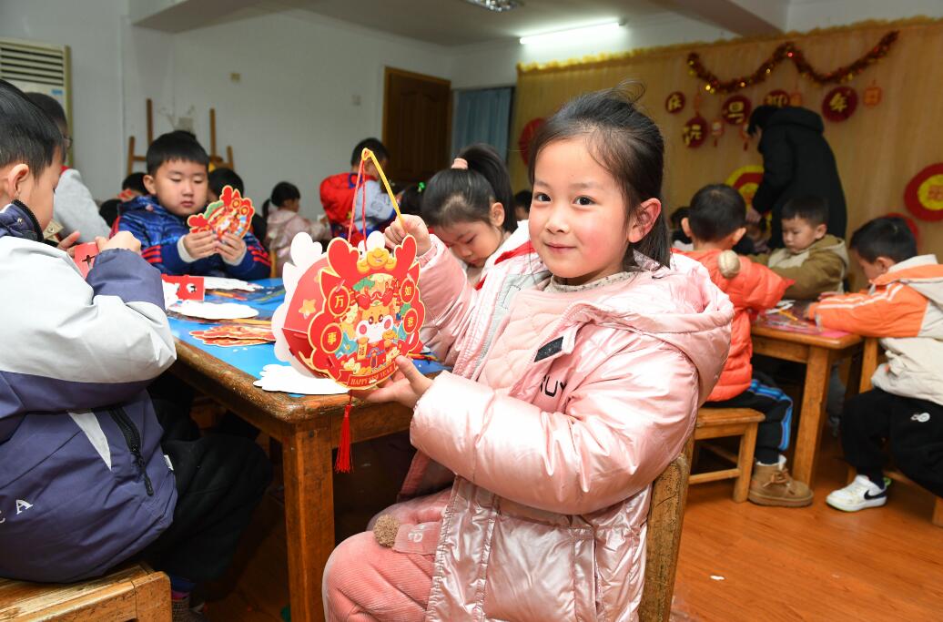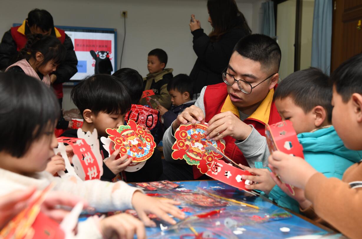 隨后,志愿者與孩子們還分組一起動手制作了“龍年小燈籠”,在志愿者的指導(dǎo)一下,整理素材、拼接卡紙、綁流蘇……孩子們一步步依次組裝。制作過程中,孩子們異常興奮,有說有笑,不一會兒他們就制作完成一盞盞漂亮的小燈籠。看著自己的勞動成果,孩子們的笑臉更加燦爛了。