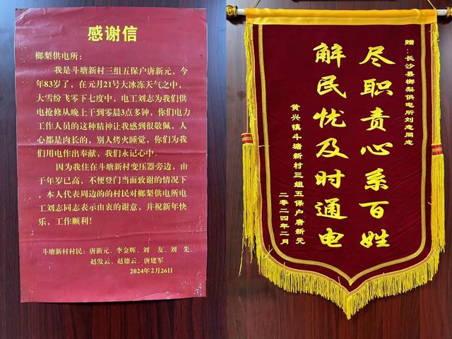 唐新元老人在感謝信中寫道:“人心都是肉長的,這么多年,你們電力工作人員始終貼心為老人服務的精神,讓我感到很敬佩。你們?yōu)槲覀冇秒娮龀龅姆瞰I,我們永記心中。”