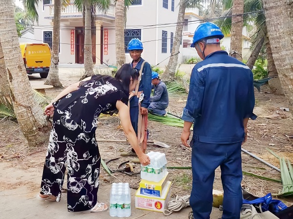 “感謝你們千里迢迢從貴州來(lái)支援我們,幫助我們搶修復(fù)電,太感動(dòng)了!”海南省文昌市東郊鎮(zhèn)文龍村村民說(shuō)到。村民們看著搶修人員辛苦的模樣,自發(fā)給大家送來(lái)了水和飲料解渴降溫,還為搶修人員帶路,加快搶修進(jìn)度。