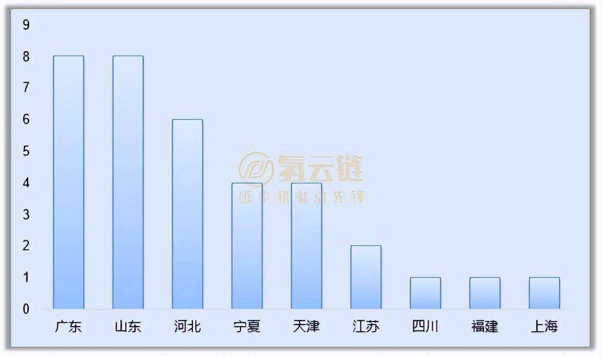 隨著全國氫能產(chǎn)業(yè)的進(jìn)一步發(fā)展,氫能產(chǎn)業(yè)已成為各省低碳和經(jīng)濟(jì)發(fā)展的重要力量。據(jù)氫云鏈統(tǒng)計,已發(fā)布的9個省份中均有氫能產(chǎn)業(yè)項目,共涉及35項,涵蓋整個產(chǎn)業(yè)鏈,其中在項目數(shù)上山東和廣東遙遙領(lǐng)先。氫云鏈分析相關(guān)項目的特點如下: