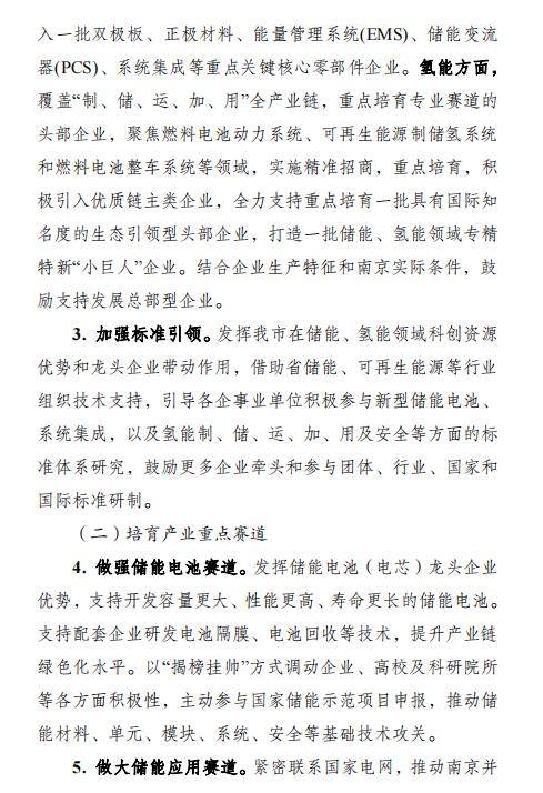 在儲能方面,培育重點龍頭企業(yè)。從應用場景、要素供給、研發(fā)投入、營商環(huán)境等方面加大對龍頭企業(yè)的支持力度,聚焦產(chǎn)業(yè)鏈關鍵節(jié)點,引入一批雙極板、正極材料、能量管理系統(tǒng)(EMS)、儲能變流器(PCS)、系統(tǒng)集成等重點關鍵核心零部件企業(yè)。