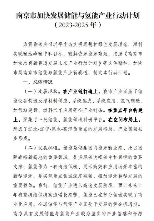 《南京發(fā)布加快發(fā)展儲能與氫能產(chǎn)業(yè)行動計劃(2023-2025年)》