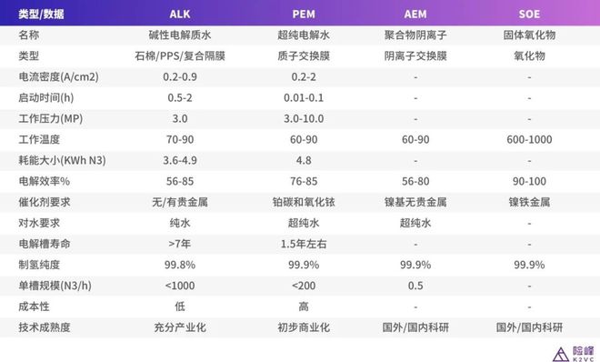 圖表:四種電解水制氫技術(shù)對比