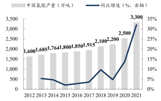 而自2020年“雙碳”目標提出以來,我國氫能產(chǎn)業(yè)發(fā)展加速,氫能產(chǎn)量由2017年的1915萬噸增長至2021年的3300萬噸,5年CAGR達14.6%,2021年32%的同比增速更是創(chuàng)下新高,目前已是第一大制氫國。并且氫儲能2023年就是產(chǎn)業(yè)化元年,長周期氫儲能項目建設(shè)還會加速綠氫生產(chǎn)。