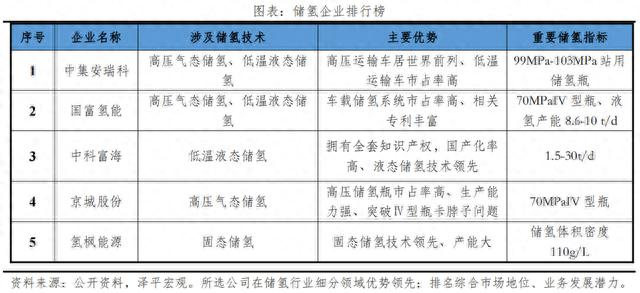 儲(chǔ)氫排行主要看氫儲(chǔ)運(yùn)企業(yè)是否掌握核心技術(shù)路線、核心材料。