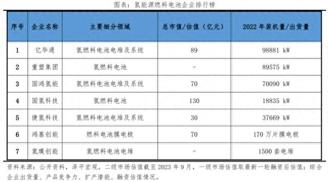 4、氫燃料電池企業(yè)排行榜