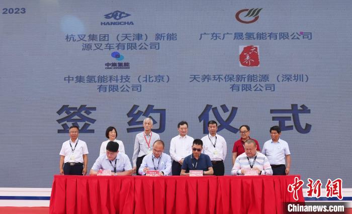 當(dāng)日,廣晟氫能聯(lián)合杭叉新能源在展會上推出45噸氫燃料電池正面吊新品,并與中集氫能、天養(yǎng)新能源簽署港口應(yīng)用及配套支撐戰(zhàn)略合作協(xié)議。該產(chǎn)品是現(xiàn)今全球首臺最大氫燃料電池工業(yè)車輛起重設(shè)備,不僅填補(bǔ)了該領(lǐng)域的國際空白,也解決了港口大型起重設(shè)備高能耗、高排放的痛點(diǎn)問題,為建設(shè)智慧港口、綠色港口貢獻(xiàn)新的力量。