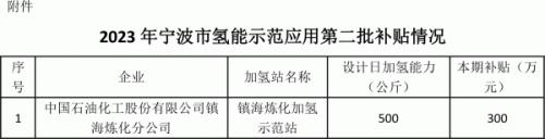 關于2023年寧波市氫能示范應用第二批補貼情況的公示