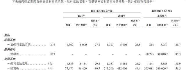 重塑能源也“預(yù)留”了充足的產(chǎn)能,報告期內(nèi),其氫燃料電池系統(tǒng)產(chǎn)能利用率分別為27.2%、26.5%及21.7%,燃料電池電堆產(chǎn)能利用率分別為29.6%、26.2%及31.9%,其余產(chǎn)品各期產(chǎn)能利用率均未超過90%。