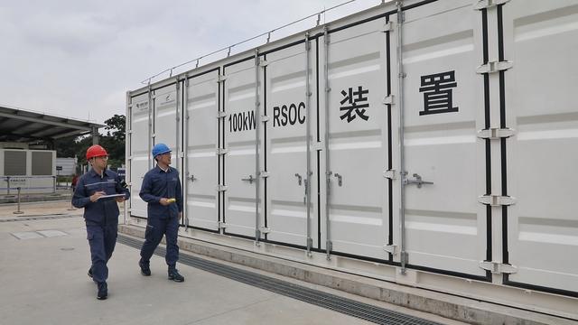 廣州供電局氫能源研究中心楊怡萍介紹:“目前,通過對(duì)大功率可逆固體氧化物電池技術(shù)的突破,裝置的系統(tǒng)電解制氫功率已達(dá)100千瓦,電堆平均每三度電可制一立方氫,相比傳統(tǒng)電解制氫技術(shù)的效率提升了20%-30%,尾氣循環(huán)利用下發(fā)電效率可達(dá)60%。”