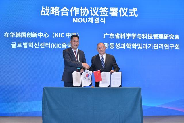 本次論壇由廣東省科學(xué)學(xué)與科技管理研究會(GSTMR)、在華韓國創(chuàng)新中心(KIC中國)共同主辦。論壇上,廣東省科學(xué)學(xué)與科技管理研究會與在華韓國創(chuàng)新中心(KIC中國)共同簽署戰(zhàn)略合作協(xié)議,翻開合作新篇章。雙方將按照此次論壇達(dá)成的共識,全力協(xié)調(diào)各方力量,每年定期舉辦相關(guān)方面的高層次研討活動,進(jìn)一步推動相關(guān)科技成果在大灣區(qū)加速落地轉(zhuǎn)化。