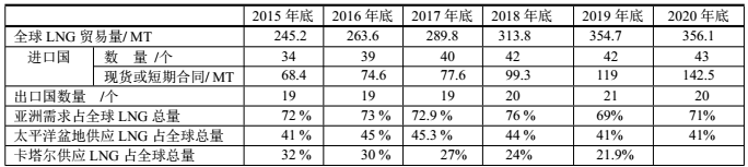 2015~2020年全球LNG關鍵數(shù)據(jù)