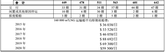 截至2020年底,有642艘運輸船,包括43艘FSRU和58艘儲罐<50 000 m