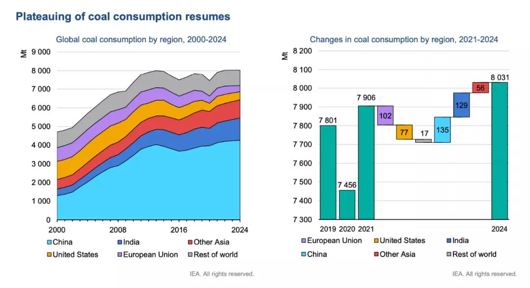 根據(jù)國際能源署(IEA)的最新報告,2021年全球煤炭發(fā)電量達到10350太瓦時(TWH),比上年增長9%,達到歷史新高。然而,煤炭在2021年全球發(fā)電量中所占的份額為31%,低于2007年36%的高點。在美國和歐盟,煤炭發(fā)電量預(yù)計在2021年增加近20%,但總量不會達到2019年的水平。相比之下,印度和中國的增長率分別為12%和9%,這兩個國家的煤炭發(fā)電量將達到創(chuàng)紀錄的水平??紤]到全球工業(yè)生產(chǎn)的反彈,全球煤炭需求總量預(yù)計將在2021年增長6%,接近2013年的創(chuàng)紀錄水平。