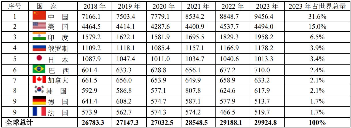 本數(shù)據(jù)來自《BP Statistical Review of World Energy 2024》。