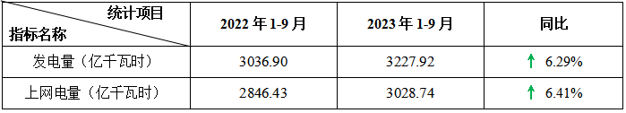 圖1:2023年1-9月全國發(fā)電量統(tǒng)計分布
