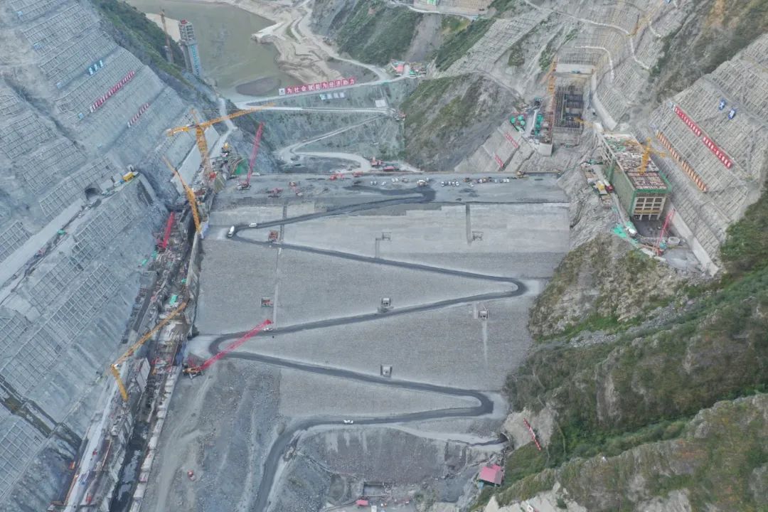金川水電站大壩壩體坐落于最大深度達65米的深厚覆蓋層上,趾板建造于強荷巖體上,兩岸邊坡和左岸地下洞室群地質(zhì)條件復(fù)雜,工程建設(shè)質(zhì)量要求高,難度大,工期緊張。施工過程中,項目部優(yōu)化施工組織和強化資源配置,加強現(xiàn)場施工組織協(xié)調(diào),在大壩填筑工程高峰期,單月填筑強度達60萬立方米;面對地質(zhì)條件復(fù)雜、深厚覆蓋層等困難的挑戰(zhàn),項目部通過反復(fù)試驗與專家論證,實施科學(xué)的強夯加固方案,有效提高壩基的承載力,降低沉降量,確保壩體的穩(wěn)定性。