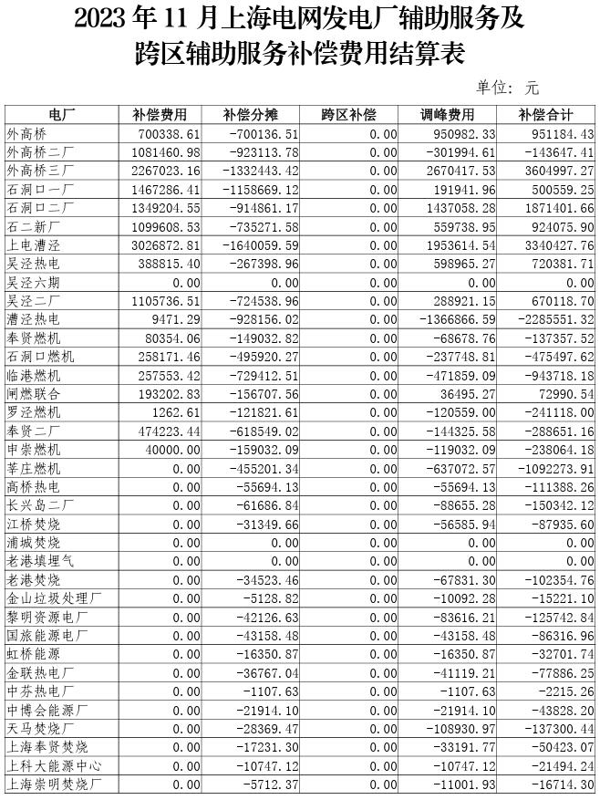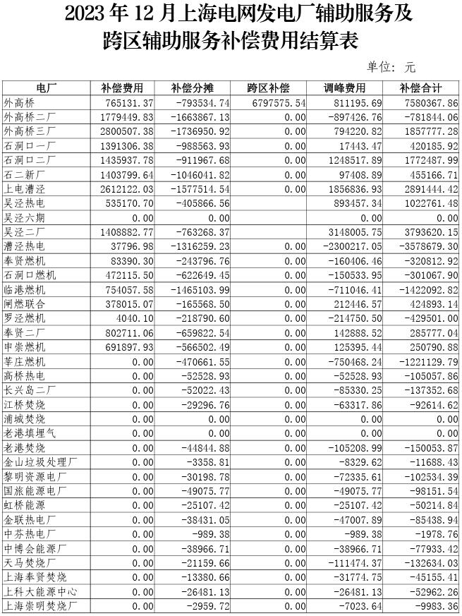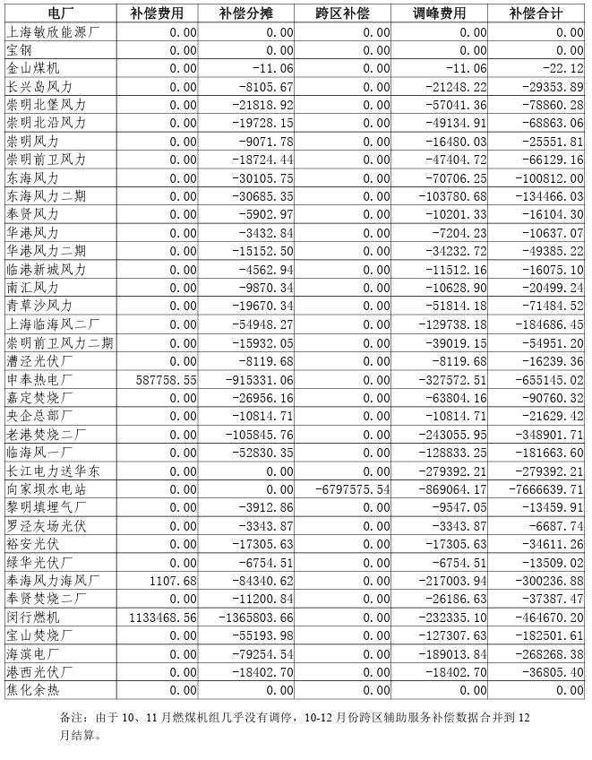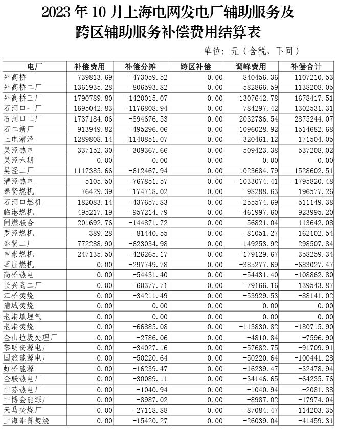 附件:2023年10-12月上海電網(wǎng)發(fā)電廠輔助服務(wù)及跨區(qū)輔助服務(wù)補(bǔ)償費(fèi)用結(jié)算表