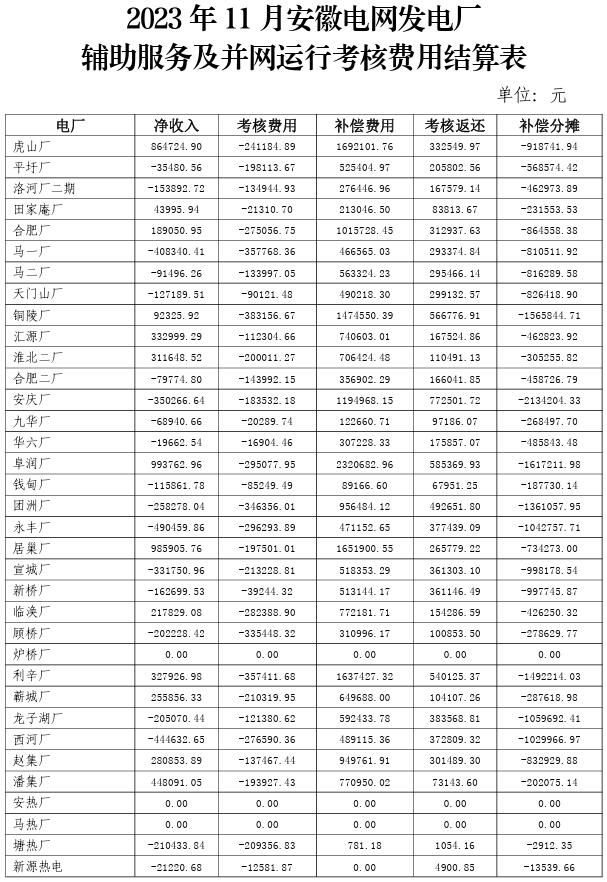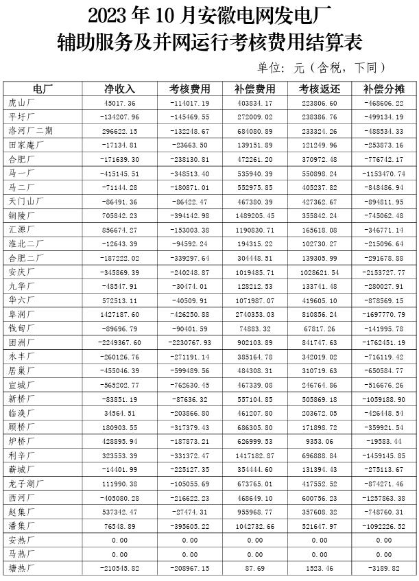 附件:2023年10-12月安徽電網(wǎng)發(fā)電廠輔助服務(wù)及并網(wǎng)運(yùn)行考核費(fèi)用結(jié)算表