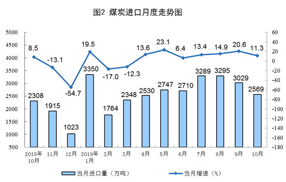 10月份,煤炭進(jìn)口2568.5萬噸,同比增長11.3%,增速比上月回落9.3個(gè)百分點(diǎn);1—10月份,煤炭進(jìn)口2.8億噸,同比增長9.6%。