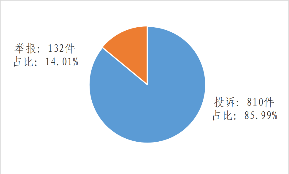 2023年6月,12398熱線共接收投訴舉報942件,環(huán)比增長19.85%、同比下降34.76%。其中:投訴810件,環(huán)比增長17.39%、同比下降41.39%;舉報132件,環(huán)比增長37.50%、同比增長112.90%。