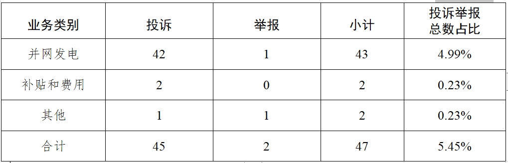 表二 新能源和可再生能源行業(yè)接收投訴舉報(bào)業(yè)務(wù)分類(lèi)情況表