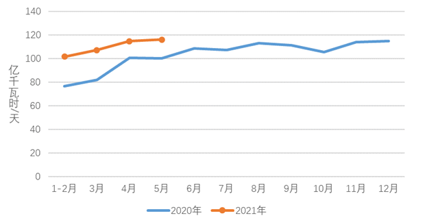 5月份,化工行業(yè)用電量431億千瓦時,同比增長14.8%,增速比上年同期提高16.9個百分點;建材行業(yè)用電量398億千瓦時,同比增長9.0%,增速比上年同期提高2.5個百分點;黑色金屬冶煉行業(yè)用電量569億千瓦時,同比增長14.6%,增速比上年同期提高12.5個百分點;有色金屬冶煉行業(yè)用電量572億千瓦時,同比增長10.4%,增速比上年同期提高7.7個百分點。
