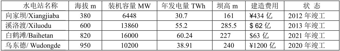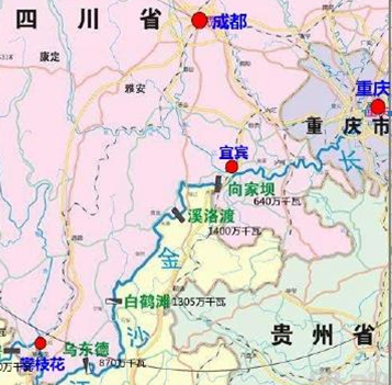 如果把三峽水電站算為巨無霸的標(biāo)準(zhǔn),當(dāng)今世界還沒有哪家水電站超過她。值得注意的是,在四川長江-金沙江段修建了四座世界級(jí)的水電站:向家壩、溪洛渡、白鶴灘、烏東德。這四個(gè)手牽手的小朋友裝機(jī)總?cè)萘窟_(dá)46508MW,為三峽水電站裝機(jī)容量22500 MW的46508/22500=2.07倍。白鶴灘(Baihetan)僅次于三峽水電站成為中國第二大水電站,也成為世界第二大水電站,把伊泰普水電站擠到世界第三了。