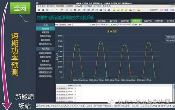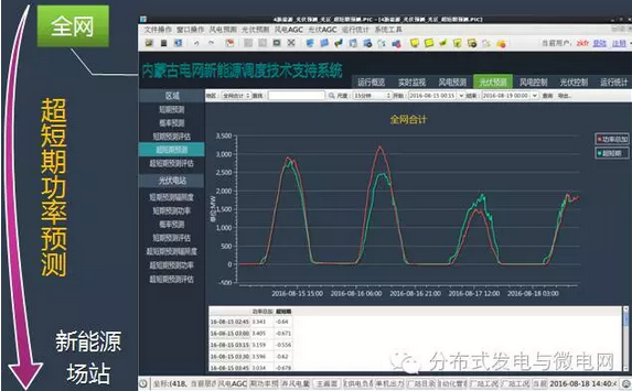2014年12月,光伏發(fā)電信息采集和實(shí)時(shí)監(jiān)視;2015年11月,光伏發(fā)電短期和超短期預(yù)測(cè);2016年1月,光伏發(fā)電概率預(yù)測(cè);2016年7月,風(fēng)光火蓄協(xié)調(diào)實(shí)時(shí)閉環(huán)控制,新能源調(diào)度運(yùn)行指標(biāo)統(tǒng)計(jì)系統(tǒng);全面實(shí)現(xiàn)可觀、可控、可預(yù)測(cè)。