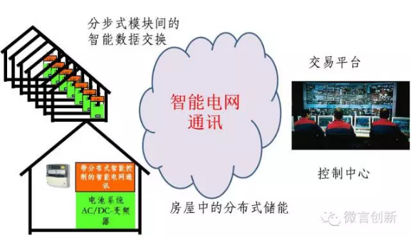 分布式微電網(wǎng)上的能量和產生的數(shù)據(jù),通過智能電網(wǎng)和因特網(wǎng)實現(xiàn)互聯(lián)互通,將相關信息發(fā)布到交易平臺上。微電網(wǎng)本身也由很多小模塊組成,集結在一起能夠做到在當?shù)叵牡羲a生的能量。