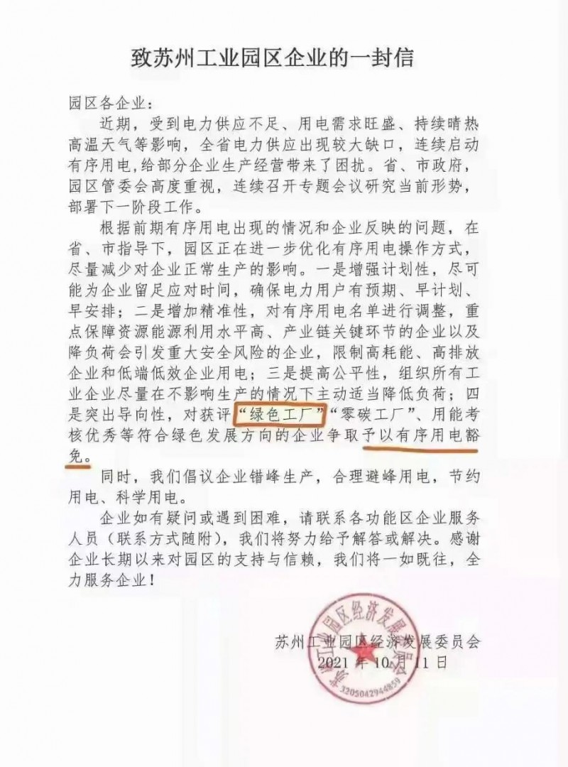 里面提到,近期受到電力供應(yīng)不足、用電需求旺盛、持續(xù)晴熱高溫天氣等影響,電力供應(yīng)出現(xiàn)較大缺口,連續(xù)啟動(dòng)有序用電,給部分企業(yè)生產(chǎn)經(jīng)營(yíng)帶來了困擾。在突出導(dǎo)向性中,提出對(duì)獲評(píng)“綠色工廠”“零碳工廠”、用能考核優(yōu)秀等符合綠色發(fā)展方向的企業(yè)爭(zhēng)取予以有序用電豁免。