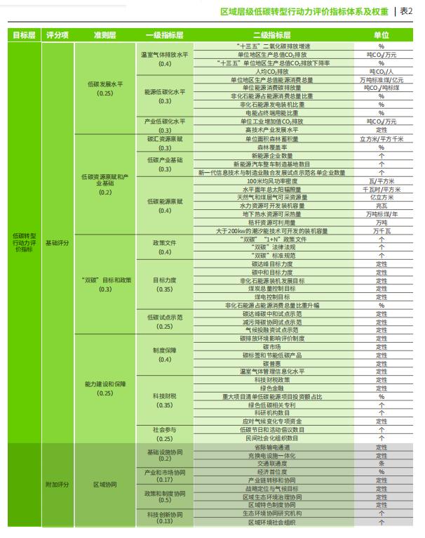 區(qū)域?qū)蛹壍吞嫁D(zhuǎn)型行動(dòng)力評價(jià)指標(biāo)體系及權(quán)重。綠色和平供圖
