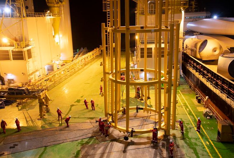 8月4日,搭載著全球已下線的最長(zhǎng)126米風(fēng)電葉片的“遠(yuǎn)瑞169”輪成功抵靠山東港口煙臺(tái)港蓬萊港公司泊位,在兩臺(tái)門(mén)機(jī)的高效配合下,該海上“巨無(wú)霸”僅用25分鐘便成功起吊下船,再次打破山東港口最長(zhǎng)風(fēng)電葉片吊裝紀(jì)錄,持續(xù)擦亮“中國(guó)北方知名風(fēng)電設(shè)備作業(yè)母港”稱號(hào)。