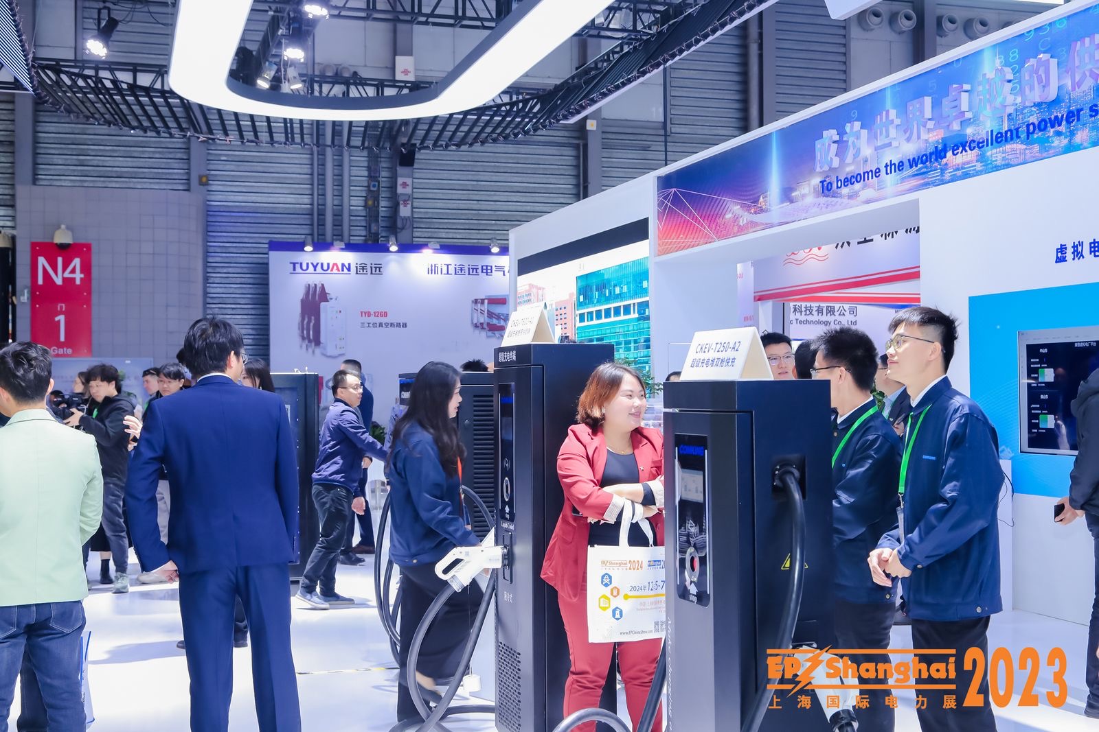 充電樁展區(qū),展示了小區(qū)、園區(qū)、公共快充站、公交、物流等場(chǎng)景下適用的交直流智能充電設(shè)備。(配合產(chǎn)品全家福圖)