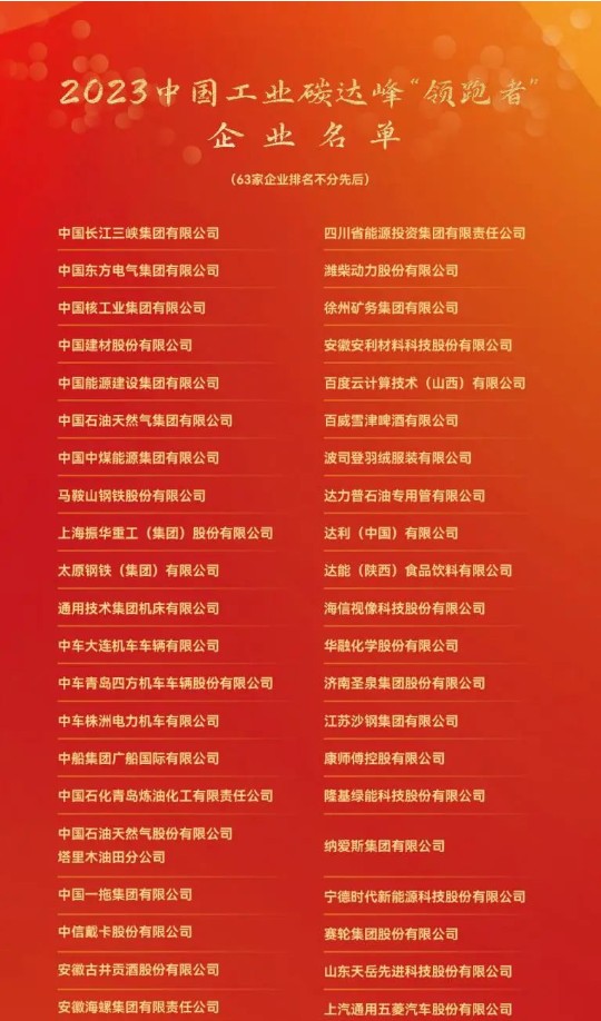 2023中國工業(yè)碳達(dá)峰“領(lǐng)跑者”企業(yè)名單
