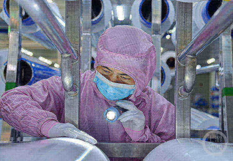 技術(shù)工人在對鋰電池隔膜進行檢測。圖片來源/星源材質(zhì)