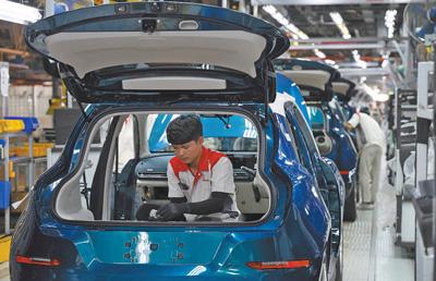 今年1月,中國(guó)車企長(zhǎng)城汽車旗下電動(dòng)汽車歐拉好貓?jiān)谔﹪?guó)羅勇新能源汽車制造基地正式下線,成為泰國(guó)首款本土量產(chǎn)的純電車型,將加速泰國(guó)汽車行業(yè)電氣化轉(zhuǎn)型。圖為該制造基地的生產(chǎn)車間內(nèi),工人在進(jìn)行汽車裝配作業(yè)。本報(bào)記者 白元琪攝