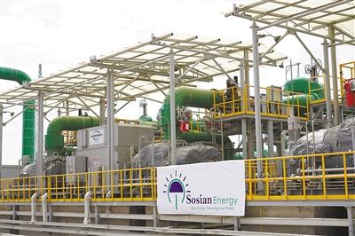 由中國(guó)企業(yè)承建的肯尼亞索西安地?zé)犭娬居谌ツ?月底投產(chǎn)送電,成為非洲首個(gè)從設(shè)計(jì)、產(chǎn)品生產(chǎn)到建設(shè)、調(diào)試完全由中國(guó)企業(yè)獨(dú)立完成的地?zé)岚l(fā)電站。該電站設(shè)計(jì)裝機(jī)容量35兆瓦,每年可減少二氧化碳排放24萬(wàn)噸。圖為索西安地?zé)犭娬?號(hào)發(fā)電機(jī)組。本報(bào)記者 黃煒鑫攝