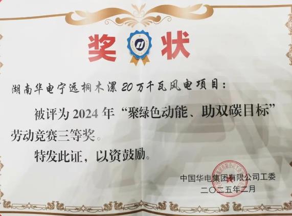 從《關(guān)于表彰2024年“聚綠色動能、助雙碳目標(biāo)”打通“堵點”專項勞動競賽先進(jìn)集體和個人的決定》(中國華電工委〔2025〕37號)中獲悉,公司所屬桐木漯20萬千瓦風(fēng)電項目榮獲2024年集團(tuán)公司“聚綠色動能、助雙碳目標(biāo)”勞動競賽三等獎。新能湖南分公司工程建設(shè)部(物資部)主任賀亮平榮獲2024年集團(tuán)公司“聚綠色動能、助雙碳目標(biāo)”勞動競賽打通“堵點”能手榮譽稱號。
