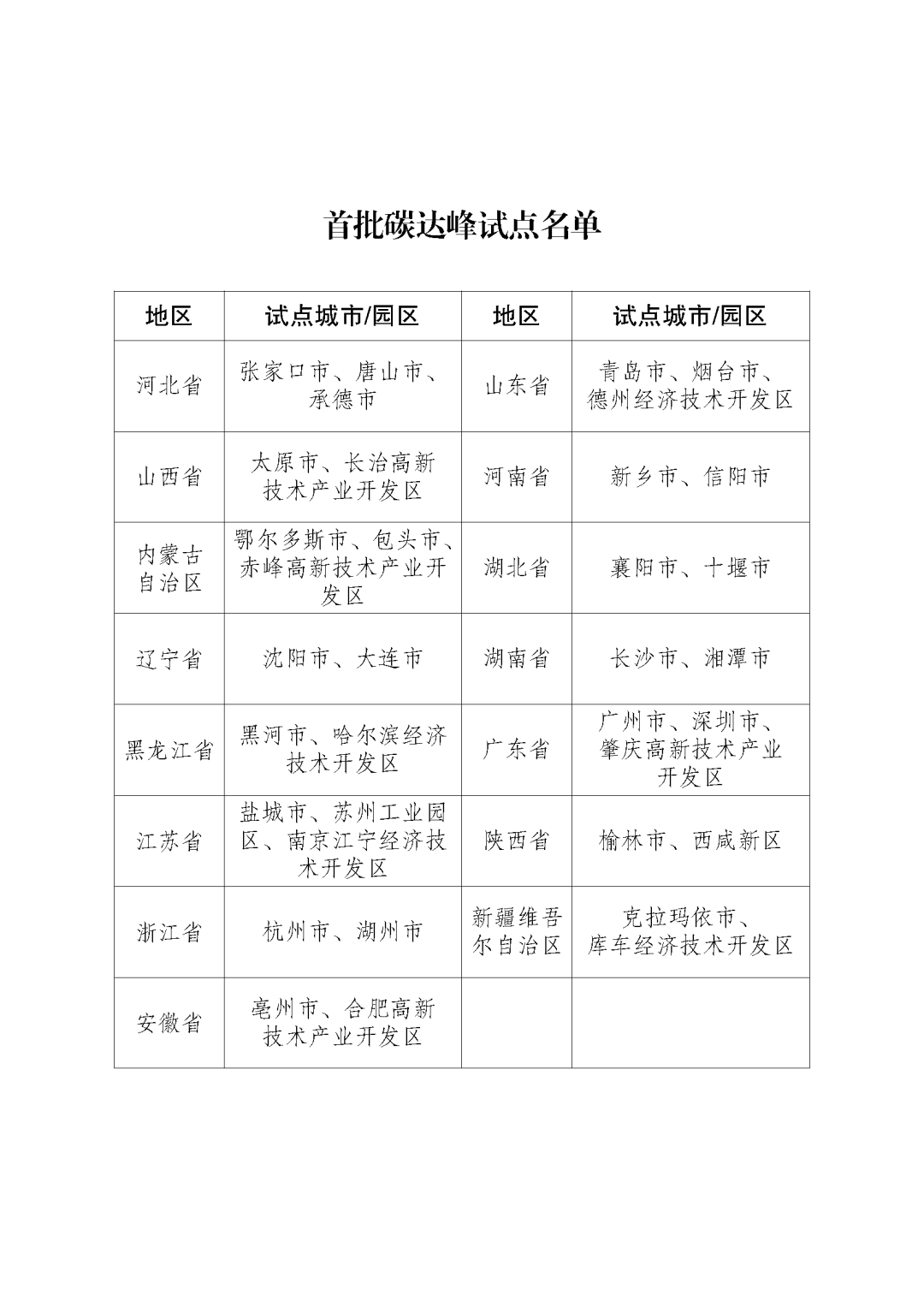 國家發(fā)展改革委辦公廳關(guān)于印發(fā)首批碳達(dá)峰試點(diǎn)名單的通知