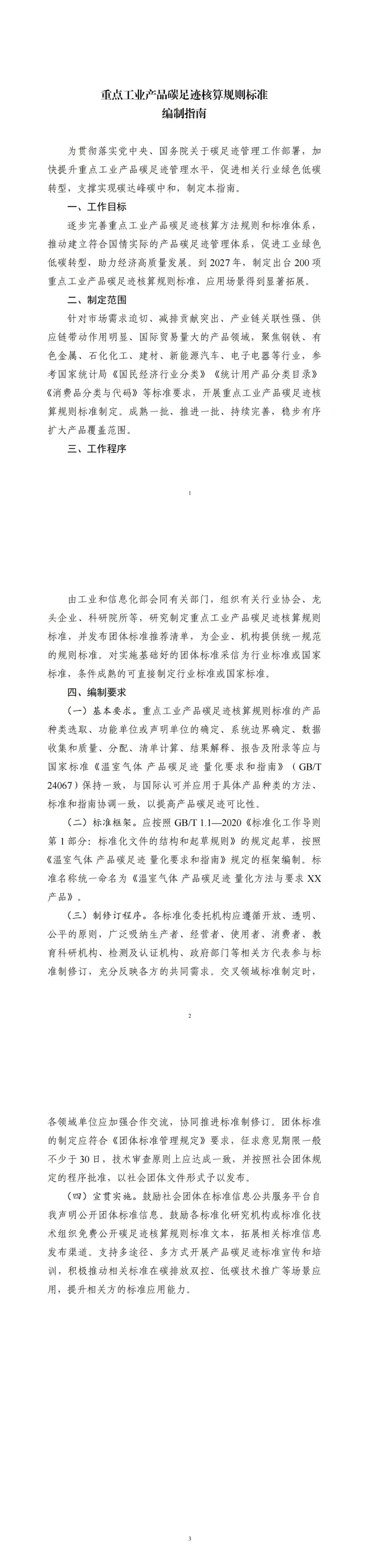 為貫徹落實黨中央、國務院關于碳足跡管理工作部署,加快提升重點工業(yè)產(chǎn)品碳足跡管理水平,促進相關行業(yè)綠色低碳轉(zhuǎn)型,支撐實現(xiàn)碳達峰碳中和,特制定《重點工業(yè)產(chǎn)品碳足跡核算規(guī)則標準編制指南》,請遵照執(zhí)行。