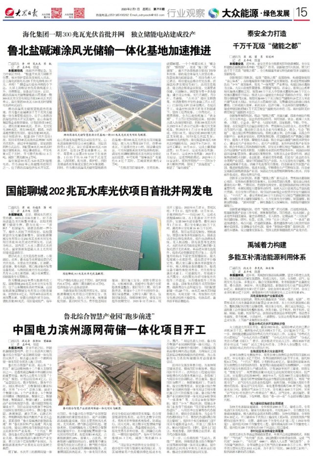 “在推進(jìn)項(xiàng)目建設(shè)中,立足優(yōu)勢(shì),破題解題,一個(gè)個(gè)難題從紙上‘概念圖’‘規(guī)劃圖’,變成‘施工圖’‘實(shí)景圖’,離不開(kāi)各級(jí)能源主管部門指導(dǎo)和關(guān)懷,靠的是全體?;斯?jiān)克難、攻營(yíng)拔寨的砥礪奮進(jìn)。”項(xiàng)目負(fù)責(zé)人對(duì)記者說(shuō),項(xiàng)目建設(shè)由濰坊市發(fā)改委、濱海區(qū)經(jīng)濟(jì)發(fā)展局等部門,共同壓茬推進(jìn)。建立政企聯(lián)席會(huì)議制度,完善要素保障、問(wèn)題解決、調(diào)度督導(dǎo)等十多條措施;建立項(xiàng)目臺(tái)賬,實(shí)行月調(diào)度、月分析、月通報(bào),“點(diǎn)對(duì)點(diǎn)”細(xì)化支持政策,申請(qǐng)政策性開(kāi)發(fā)性金融工具1.5億元;打造項(xiàng)目EPC總承包模式,在延遲開(kāi)工、設(shè)備材料供貨不足等不利因素下,堅(jiān)持工程再統(tǒng)籌、工序再優(yōu)化、工期再倒排,全力以赴搶抓施工“黃金期”,千方百計(jì)把時(shí)間搶回來(lái),按時(shí)按點(diǎn)進(jìn)入決戰(zhàn)收尾階段。首批100兆瓦光伏從2022年8月25日打設(shè)第一根光伏支架樁基,到2023年1月12日全部安裝完成,歷經(jīng)141天,建設(shè)完成26022根光伏區(qū)支架樁基、3253組光伏區(qū)支架、184380塊光伏組件;?;瘓F(tuán)60兆瓦/120兆瓦時(shí)儲(chǔ)能電站,2022年9月20日,項(xiàng)目開(kāi)工建設(shè);10月15日,完成土建基礎(chǔ)澆筑;11月18日,完成電池倉(cāng)吊裝;11月19日,完成PCS倉(cāng)吊裝;2023年1月12日,完成并網(wǎng)前調(diào)試;2023年1月14日21時(shí),順利并網(wǎng)投產(chǎn)……歷時(shí)4個(gè)多月順利并網(wǎng),展現(xiàn)了“濱海溫度”、彰顯了“?;俣取?。