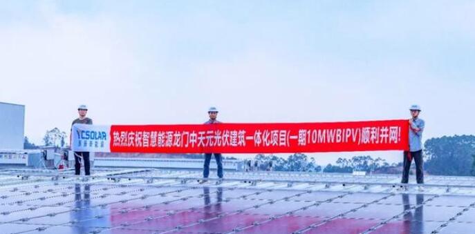 日前,由廣東惠電投綜合能源服務(wù)有限公司旗下惠州市智慧綜合能源服務(wù)有限公司(以下簡稱“智慧能源公司”)投資、廣西英辰新能源技術(shù)有限公司(以下簡稱“英辰新能源”)承建的智慧能源龍門中天元一期10兆瓦BIPV項目并網(wǎng)發(fā)電,預(yù)計首年發(fā)電量為1033萬千瓦時,首年利用小時數(shù)為1039.12小時,25 年累計發(fā)電量25825萬千瓦時,將對龍門縣工業(yè)經(jīng)濟高質(zhì)量發(fā)展起到示范和促進作用。