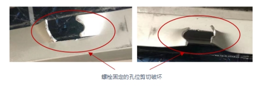 當遭受大風(fēng)等外界壓力時,組件的破壞都是從最薄弱點開始的,即連接處的C面。這在兩家主流廠家的風(fēng)洞測試中,得到了同樣的驗證結(jié)果:組件失效均為螺栓固定的孔位剪切破壞。因此,提高最薄弱點的承載力,是提高組件抗載荷能力最有效和最經(jīng)濟的方式。