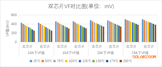 經(jīng)測試發(fā)現(xiàn),同一個晶圓上的2個芯片在封裝之后VF不超過3mV,這個差值在整個二極管的壓降中僅約1%,在測試誤差范圍之內(nèi),而《無法忽視的真相》一文中直接按50mV模擬分析,完全是脫離實際數(shù)據(jù)的猜想。