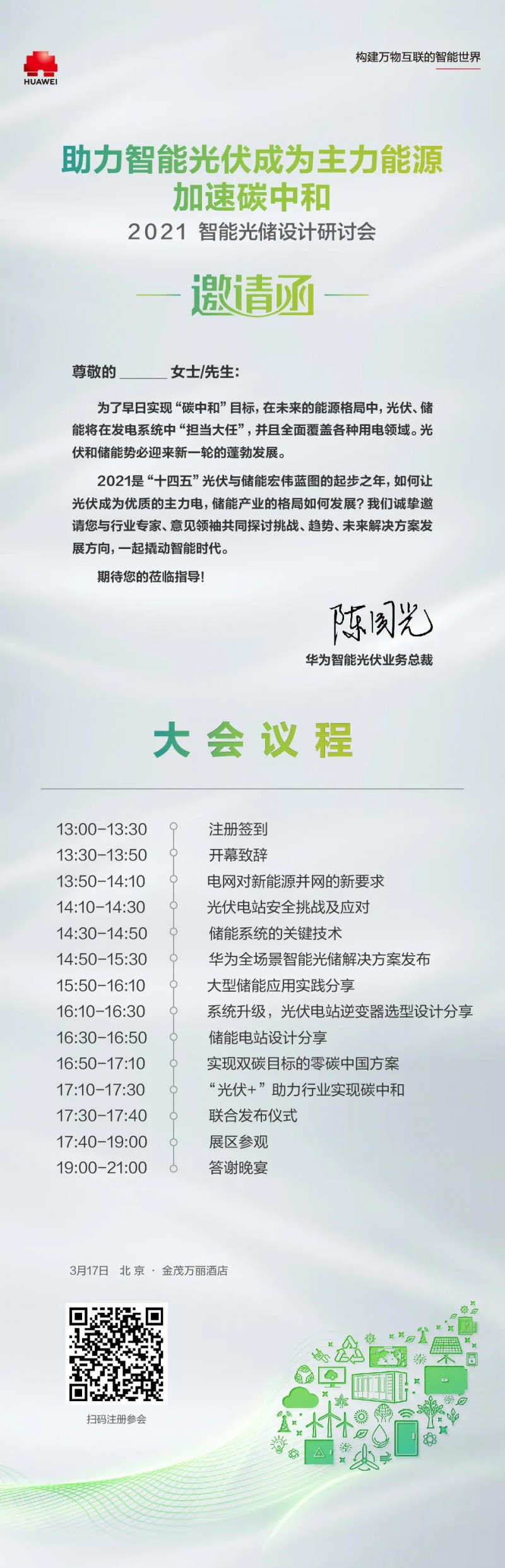 2021是“十四五”光伏與儲(chǔ)能宏偉藍(lán)圖的起步之年,讓光伏發(fā)電可儲(chǔ)可控,已成為能源轉(zhuǎn)型的必然選擇。如何助力智能光伏成為主力能源,促進(jìn)儲(chǔ)能、光伏產(chǎn)業(yè)協(xié)同良性發(fā)展,是實(shí)現(xiàn)我國(guó)碳中和目標(biāo)的重中之重。為了盡快迎接零碳時(shí)代的到來,3月17日,2021智能光儲(chǔ)設(shè)計(jì)研討會(huì)即將在北京舉辦,掃描圖片下方二維碼即可報(bào)名參會(huì)!