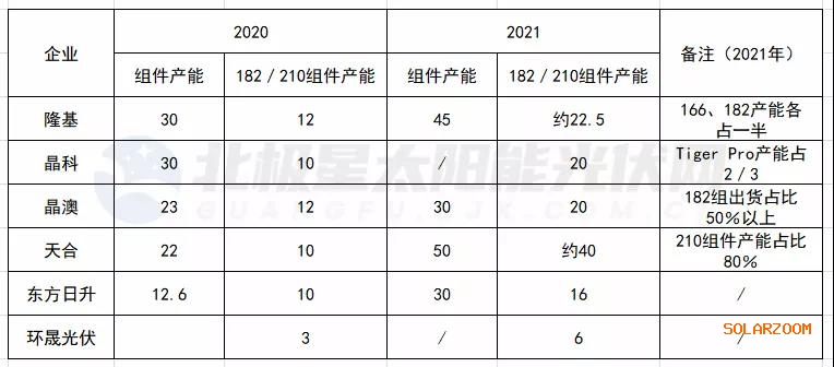 光伏頭部企業(yè)2020—2021組件產(chǎn)能(數(shù)據(jù)來(lái)企業(yè)公開(kāi)信息)