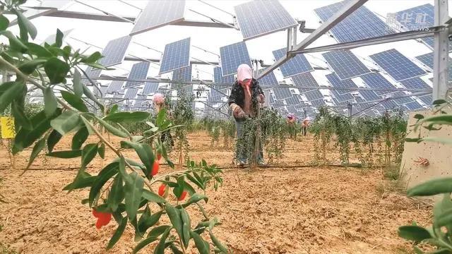 同時(shí),為綜合利用土地資源,這里的光伏板下方還種植了枸杞,構(gòu)建起“一地多用、農(nóng)光互補(bǔ)”的新型光伏產(chǎn)業(yè)發(fā)展模式。